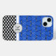 Add a monogram to the 'golf ball' to personalise this striking case coloured blue, white and black. It has two golfing-themed patterns: crossed golf clubs on blue, and polka dot golf balls on black.