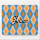 Add your name on this gradient orange and blue diamond shapes pattern design.