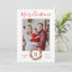 Grandmillennial Preppy Red Bow Garland Photo Holiday Card, custom photo Christmas card editable text.