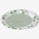 Monogram Green Eucalyptus Wedding Reception Party Paper Plate