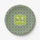 Monogram Green Flowers Pattern Paper Plate