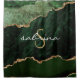 Elegant green agate trimmed with faux gold glitter combine in this design. Personalise it with your monogram initial in gold coloured decorative font and your name in white handwriting script.