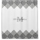 Lovely monogram and personalised shower curtain in grey, black and white greek key motif.