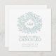Monogram green leaves wedding cancelled announcement