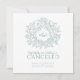 Green hand-drawn leaf monogram wedding cancelled announcement card. This simple yet stylish card is part of the matching green hand-drawn leaf monogram wedding set. Ideal to use as a wedding information card to inform your guests of a wedding or event cancellation, or reschedule due to illness or unforeseen circumstances. Simple leaf design circling your own monogram initials design. In pretty shades of sage green, grey and white. Other colour options are available. Original design by Sarah Trett for www.mylittleedenweddings.com