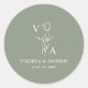 Monogram Green Minimalist Boho Wedding Classic Round Sticker