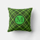 Monogram Throw Pillow with Green Tartan pattern. Change Monogram to your initial