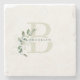 These watercolor greenery monogram coasters are the perfect complement for any decor.