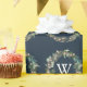 This simple Christmas holiday wrapping paper features a navy blue background with a monogram and a greenery wreath. Personalise it for your needs. You can find matching products at my store.