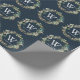 Monogram Greenery Wreath Christmas Holiday Navy Wrapping Paper