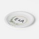 The "Monogram Greenery Wreaths Wedding Paper Plates" are elegant and charming wedding supplies designed by CaMiDesigns. These paper plates showcase a stylish monogram and a wreath of eucalyptus greenery, creating a modern boho aesthetic that is perfect for a wedding celebration. The design is easy to personalise with your details, making them a unique and practical addition to your wedding decor. For orders, shipping, product information, and further assistance, please reach out to Zazzle Customer Care directly.