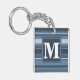 Monogram grey-blue stripes key ring
