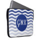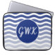Graduated blue waves cover the front of this laptop's neoprene protective case. Add your monogram in your choice of text style, size, and colour to make this case your own. A great gift for a graduating student or a "worker on the go."