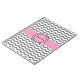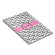 Modern and trendy monogrammed chevron stripes spiral notebook features grey and white chevron stripes and a pink accent ribbon stitched border with a round pink accent frame outlined in black and white for your initial and name. Show your personality with this fun and trendy chevron stripe spiral notebook. Perfect for a journal, taking notes, work, school and home. Makes a great gift for all occasions. Click the "Customise it!" button to change the text size, text colour, font style and more! Please note: the pink accent horizontal ribbon stitch frame border is solid pink with a ribbon stitch appearance.