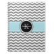 Modern and trendy monogrammed chevron stripes spiral notebook features grey and white chevron stripes and a light turquoise blue accent border with a round black accent frame outlined in black and white for your initial and name. Show your personality with this fun and trendy chevron stripe spiral notebook. Perfect for a journal, taking notes, work, school and home. Makes a great gift for all occasions. Click the "Customise it!" button to change the text size, text colour, font style and more! Please note: the pink accent horizontal ribbon stitch frame border is solid pink with a ribbon stitch appearance.