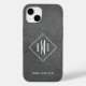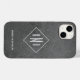 Grey faux leather background highlights your monogram in a white diamond frame and your full name at the bottom. Create for yourself or give as a gift.