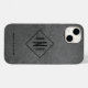 Grey faux leather background highlights your monogram in a black diamond frame and your full name at the bottom. Create for yourself or give as a gift.