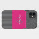 Stylish monogrammed modern grey and hot pink damask pattern with stripes Case-Mate Barely There™ iPhone 5 Case can be customised with your logo, name, initial, or other text. If you need assistance, email niteowlstudio@gmail.com.