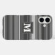 Irregular horizontal stripes in different shades of grey with a customisable monogram.