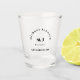Get the party started with these cute shot glasses that are easy to personalise for your bachelor party, guys' night, or bros' weekend! Monogram modern minimalist design with black accent lettering. Offers a stylish, classy look. Personalise with three lines of custom text; shown with the groomsman's name, title and date. Monogram in a white square is in the middle.