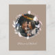 A simple chic floral faux foil monogram grullo wedding invitation. Easy to personalise with your details. Modern boho wedding invitation editable, wreaths photo wedding invitation, customisable, calligraphy handwritten font, simple, elegant.