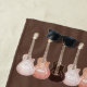 The perfect monogram design for the cool rock star in your life just personalise by adding a name and initial. Three hand drawn semi acoustic, electric guitar illustrations in country rustic style translucent white, light brown and dark brown hues repeating pattern on a brown background. Perfect for the beach where creative musical dreams are born. Ideal for musicians, music lovers especially guitarists. Musical instrument original artwork by artist Catherine Sweetman