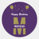 Monogram Happy Birthday Any Age Purple White Gold Classic Round Sticker
