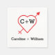 Classic heart and arrow wedding items featuring bride and groom initials and name