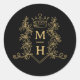 Monogram heart crown crest gold black wedding classic round sticker