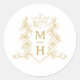 Monogram heart crown crest gold wedding classic round sticker