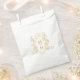 White and gold coloured monogram wedding or couples event favour bag. Ideal for a white and gold themed wedding. Other matching wedding items available. © Monogram crest with a heart crown on top and entwined with berries and leaves original hand drawing and design by Sarah Trett for www.mylittleedenweddings.com exclusively on Zazzle.
