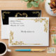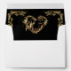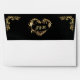 This design features a gold scroll heart on a black background on the inside flap, borders on front with heart monogram on back flap.