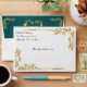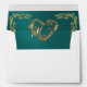 This design features a gold scroll heart on a teal background on the inside flap, borders on front with heart monogram on back flap.
