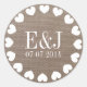 Monogram heart wedding stickers | burlap texture