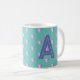 Monogram Hearts Lilac Teal Coffee Mug