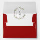 These wedding envelopes feature the bride and groom's names in modern handwritten script typography in white over a festive red background. The envelope opens to the bride and groom's monogrammed initials encircled by charming watercolor and line art. Use the template fields to enter your return address. A simple choice for winter, Christmas and holiday weddings. To see the matching wedding stationery suite visit www.zazzle.com/dotellabelle