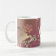 Isn't this a sweet, Holiday mug? My original snowflakes in earthy tones on a pink moss background and reindeer graphic, for that festive Christmas!