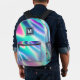Own your style with our Customisable holographic/ iridescent backpack. Bursting with vibrant colours, this backpack is a bold statement in individuality. Personalise it with your letter for a unique touch!