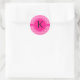 Monogram Hot Pink and White Polka Dot Pattern Classic Round Sticker