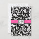 Monogram Hot Pink Black Damask Wedding RSVP Cards
