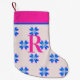 Monogram Hot Pink Blue Retro Flower Christmas Small Christmas Stocking
