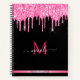 Monogram Hot Pink Dripping Glitter Black Notebook