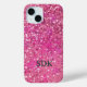 Monogram Hot Pink Glitter Sparkle Girly Glam Trend Case-Mate iPhone Case