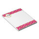 A faux shiny pink and faux gold zigzag pattern hugs the top and bottom edge of this pad and has a golden circle near the top left edge on which your personalised monogram appears.