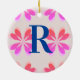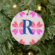 Monogram Hot Pink Orange Retro Pattern Ceramic Ornament