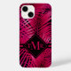 Tropical hot pink palm fronds on black, this phone case - FOR ANY DEVICE TYPE OR STYLE - features your monogram in chic lettering. Create for yourself or give as a gift. MORE colours and MATCHING items in our store.