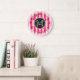 Monogram Hot Pink Stripes Modern Heart Pattern Large Clock