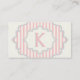 Monogram in a frame and pink, white stripes eye catching business cards, featuring your monogram in an elegant and classy ivory frame with grey outline. There is another frame under it with a striped pattern in pink, white. This stylish, girly design is modern with a retro/vintage flair. The Parisian font is used for your text. It is completely customisable and you can customise it and add your text, name or initials. You can change background colour - pink- choosing from the Zazzle colour chart. This sophisticated personalised business card design is perfect for personal or professional use.