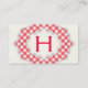 Monogram in a frame and red, white gingham pattern eye catching business cards, featuring your monogram in an elegant and classy ivory frame with grey outline. There is another frame under it with a pattern in red, white. This stylish, girly design is modern with a retro/vintage flair. The Parisian font is used for your text. It is completely customisable and you can customise it and add your text, name or initials. You can change background colour - red- choosing from the Zazzle colour chart. This sophisticated personalised business card design is perfect for personal or professional use.