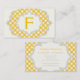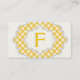 Monogram in a frame and yellow, white gingham pattern eye catching business cards, featuring your monogram in an elegant and classy ivory frame with grey outline. There is another frame under it with a gingham pattern in yellow, white. This stylish, girly design is modern with a retro/vintage flair. The Parisian font is used for your text. It is completely customisable and you can customise it and add your text, name or initials. You can change background colour - yellow - choosing from the Zazzle colour chart. This sophisticated personalised business card design is perfect for personal or professional use.
